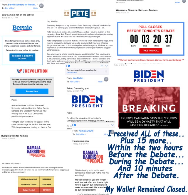 This is just a sampling of the URGENT emails I got before, during and after the debate.