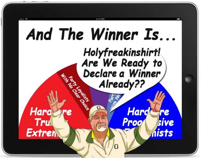Oh…and that “breast shaped chart?” Because, it is going to be women who are the swing voters that make this thing happen next year. Women.  Men have already made up their minds. And yes…I can, and will support a woman, no matter how much her voice makes me wince.