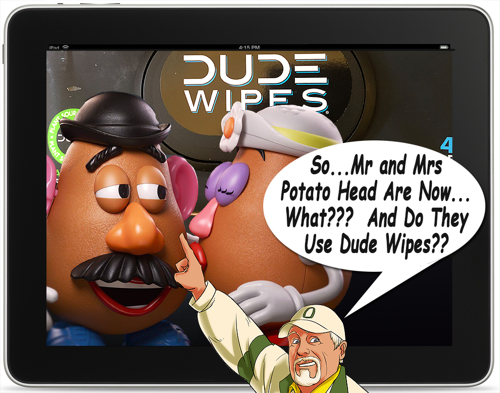So, yeah…maybe the Gen-Xers and Millennials know all about this product. But, I just had my first “Dude Wipe” experience…the very same week that I had my first pedicure, and I have to say, it has done nothing to lessen my anger at the overstepping that has happened with the whole “Mr/Mrs Potato Head” brouhaha…even though I feel slightly enlightened for both experiences.