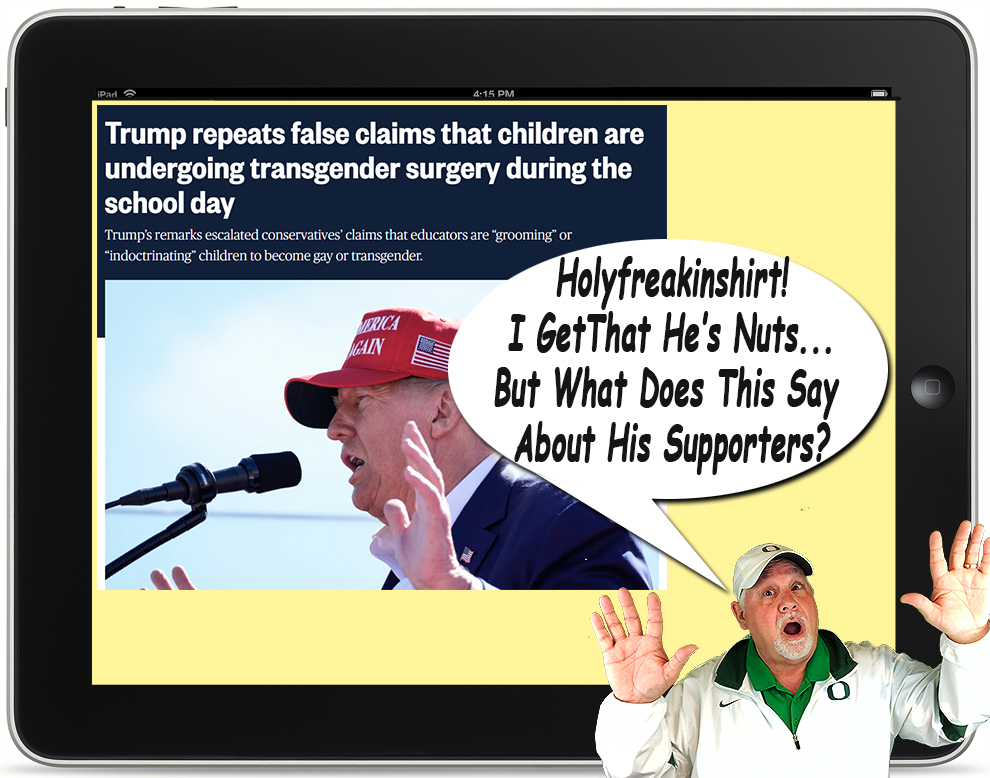 But then he doubled down…no doubt combining his gender talk with the insanity that comes from his advisor (and Project 2025 supporter) white supremacist, Stephen Miller. “You would be hard to think you would come up with taxpayer-funding gender transitions for detained migrants.” (word salad as usual…but right out of Donny’s mouth).