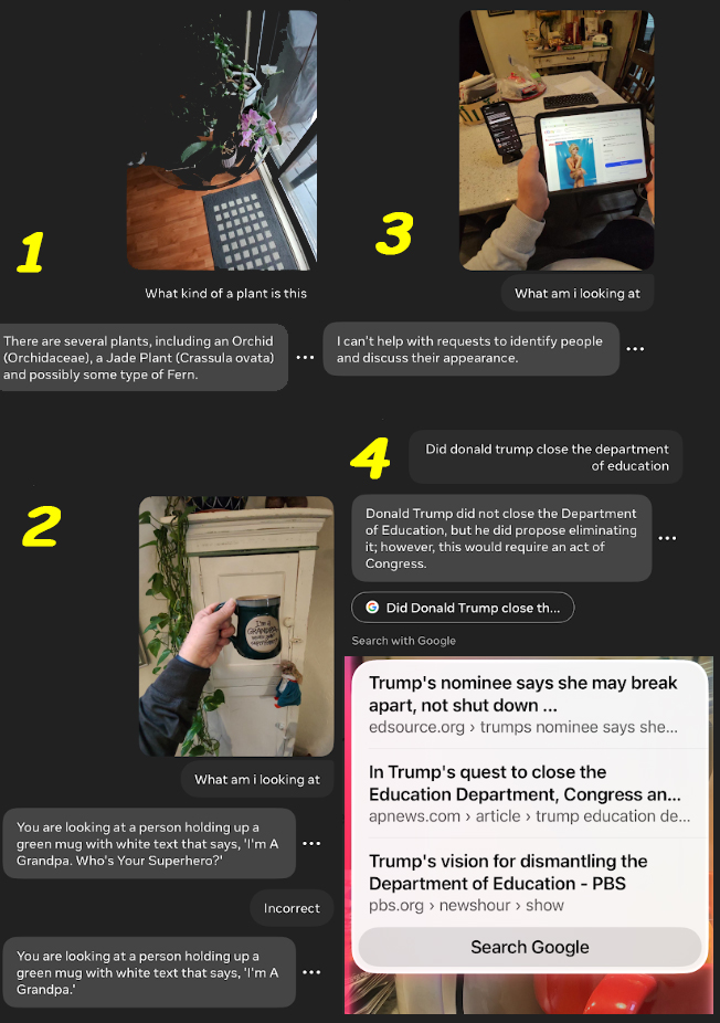 - When it came to answering broad topics, it did well. It gave me the correct weather forecast, it told me the differences between, snow, sleet and rain. BUT, when I asked it topics of interest, it got vague. Quickly. Google did a far better job of pointing me in the right direction as to the shutdown efforts of the Department of Education. Was this intentional? Or just simplifying a complex answer? (dumbing down the issues?)