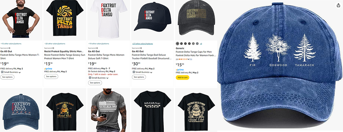Just like 99% of every MAGA hat/shirt/jacket/flag that is waved or displayed in anti-woke -protest movements and Trump rallies.