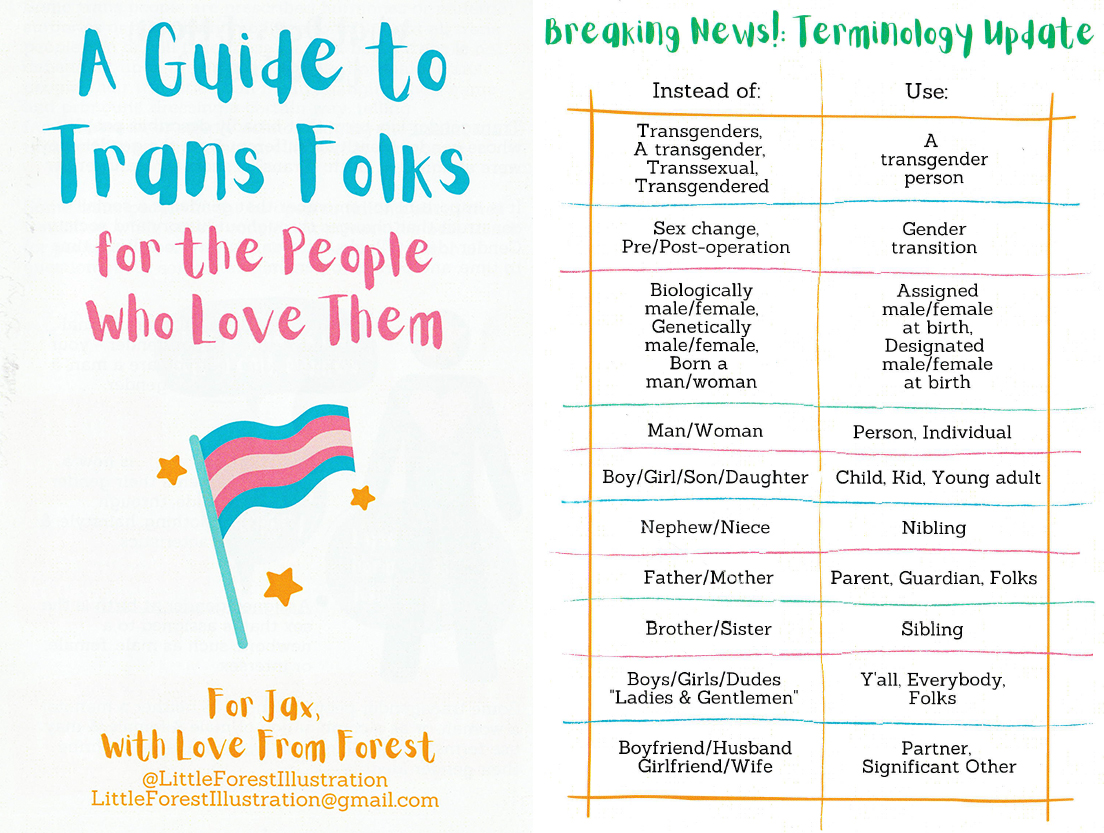 I felt awful. My feelings of “stupid old man” were only compounded by learning that the publisher has a trans child, and that the journey for she and her child had been arduous. It had however, resulted in the writing of a booklet called “A Guide to Trans Folks for the People Who Love Them.”