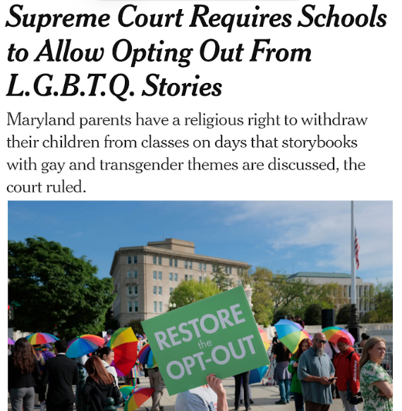 And now, in a flurry of rulings at the end of their current fiscal year, The Supreme Court is once again siding with the Religious Right, in matters that are simply ridiculous. My wife is a school counselor at the elementary level. She is shaking her head at this ruling.